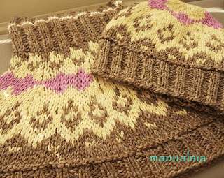 Wydziergała się w przerywniku taka oto opaska, mus był dodziergać jeszcze "cuś" z serii wrabiane, czy jak ktoś woli Fair Isle:)